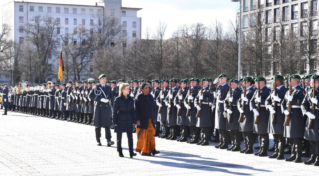 During her visit, RM also interacted with CEOs of German and Indian defence industry. The Minister urged them to expand their collaboration in defence manufacturing in India under the ‘Make in India’ initiative as well as promote defence technology and R&D cooperation with Indian companies.
