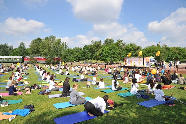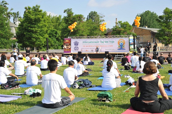 The Embassy of India, Berlin celebrated the 2nd International Day of Yoga at the Kreuzberger Wiese in Park am Gleisdreieck, Berlin on the 18th of June 2016 (Saturday) from 0900 – 1130 hrs. The celebrations were a part of the global commemoration efforts of International Day of Yoga initiated by Government of India.